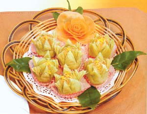 分為鐵觀音、綠茶、花茶三種口味,撒上蜜煉過(guò)的桂花,既美觀又香甜爽口,飯后吃上一盤(pán),享盡口福。