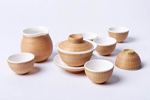 到了清朝,市面上出現(xiàn)了一種竹編茶具,此類茶具是由瓷胎搭配外部竹編包裹而成,內(nèi)胎多為陶瓷材質(zhì),包裹部分選用精挑 細(xì)選的慈竹,經(jīng)過破竹、去節(jié)、劃絲等十幾道工序,加工后的竹絲細(xì)如青絲,經(jīng)上色處理后,按茶具的形態(tài)大小編織而成,形成嚴(yán)密包裹胎體的外衣。且在泡茶過程中加上竹編外衣的保護(hù),可 減少茶具對皮膚造成的灼熱感。