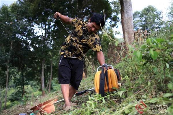 此時(shí),娜四正在茶地里查看茶樹的生長情況,時(shí)不時(shí)用鋤頭翻翻地、培培土;扎藥則拿著電動割草機(jī)清理隔壁山坡上的雜草。割草機(jī)的聲音很嘈雜,掩蓋了屋前潺潺的流水聲,停頓的間隙與山林間的蟬鳴相互唱和,卻全然沒有打擾到娜四小兒子在她身后的背簍里熟睡。“這個(gè)季節(jié)種茶容易活,我已經(jīng)泡好了茶籽,等那片地清理出來,我們準(zhǔn)備開溝種上茶,還有之前種了茶籽沒有活的地方,也要補(bǔ)種一下。”娜四介紹,因?yàn)榍謇砉ぷ鞅容^復(fù)雜,夫妻倆打算在小木屋住一晚,天亮了早早開工。