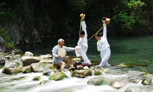 還有一些高雅的茶藝表演,是蒙頂山“禪茶”中所獨(dú)創(chuàng)的十八道獻(xiàn)茶技藝。相傳“龍行十八式”茶技是北宋高僧禪惠大師在蒙頂山結(jié)廬清修時(shí)所創(chuàng)。過(guò)去作為僧人修行的一門(mén)功課,“龍行十八式”茶藝只在蒙頂山僧人中流傳,直到清代才逐漸傳入民間。創(chuàng)下融茶道、武術(shù)、舞蹈、禪學(xué)、易理為一體的茶技-蒙頂派“龍行十八式”。佛教文化和茶文化的水乳交融,更奠定了蒙山作為世界茶文化圣山的至尊地位。