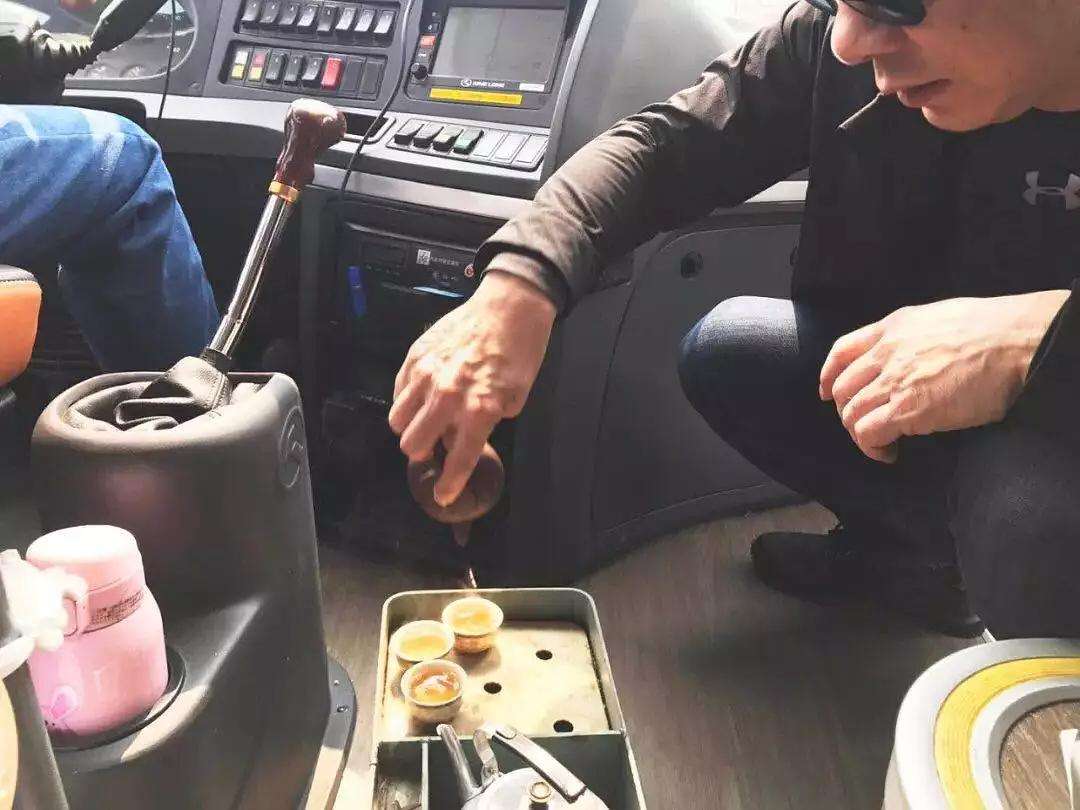 對(duì)潮汕人來說沒有什么能夠阻擋喝茶的心,不少潮汕司機(jī)還會(huì)在車上配備工夫茶具。