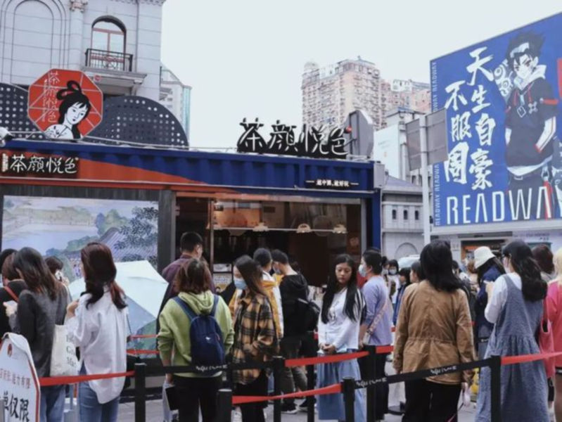 2020年12月1日,武漢天地第一家茶顏悅色開業(yè)。當(dāng)天上午憑借幾百人為長隊(duì)的開業(yè)照以及排隊(duì)8小時而熱搜提名,這是茶顏悅色走出湖南,首進(jìn)武漢市場的破局之勢,同時也打破了武漢新中式茶飲市場的平靜。