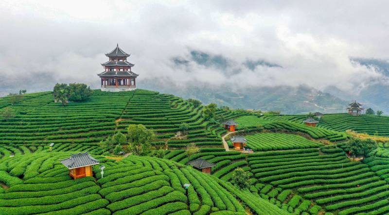 廣西三江:雨后茶園如仙境