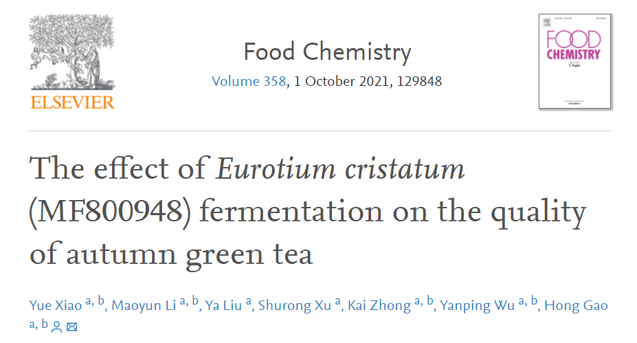 近日,我院高鴻教授團(tuán)隊以秋茶為原料,利用專利菌株“冠突散囊菌PW-1”進(jìn)行秋茶發(fā)酵,探究冠突散囊菌PW-1菌株對黑茶品質(zhì)的提升作用及機制,相關(guān)研究成果以我院為第一單位發(fā)表在食品科技領(lǐng)域頂級期刊《Food Chemistry》上,題為“The effect of Eurotium cristatum (MF800948) fermentation on the quality of autumn green tea”。我院博士研究生肖月為第一作者,高鴻教授為通訊作者,該項目獲得了四川省科技計劃項目基金(No. 20ZDYF3186)的支持。